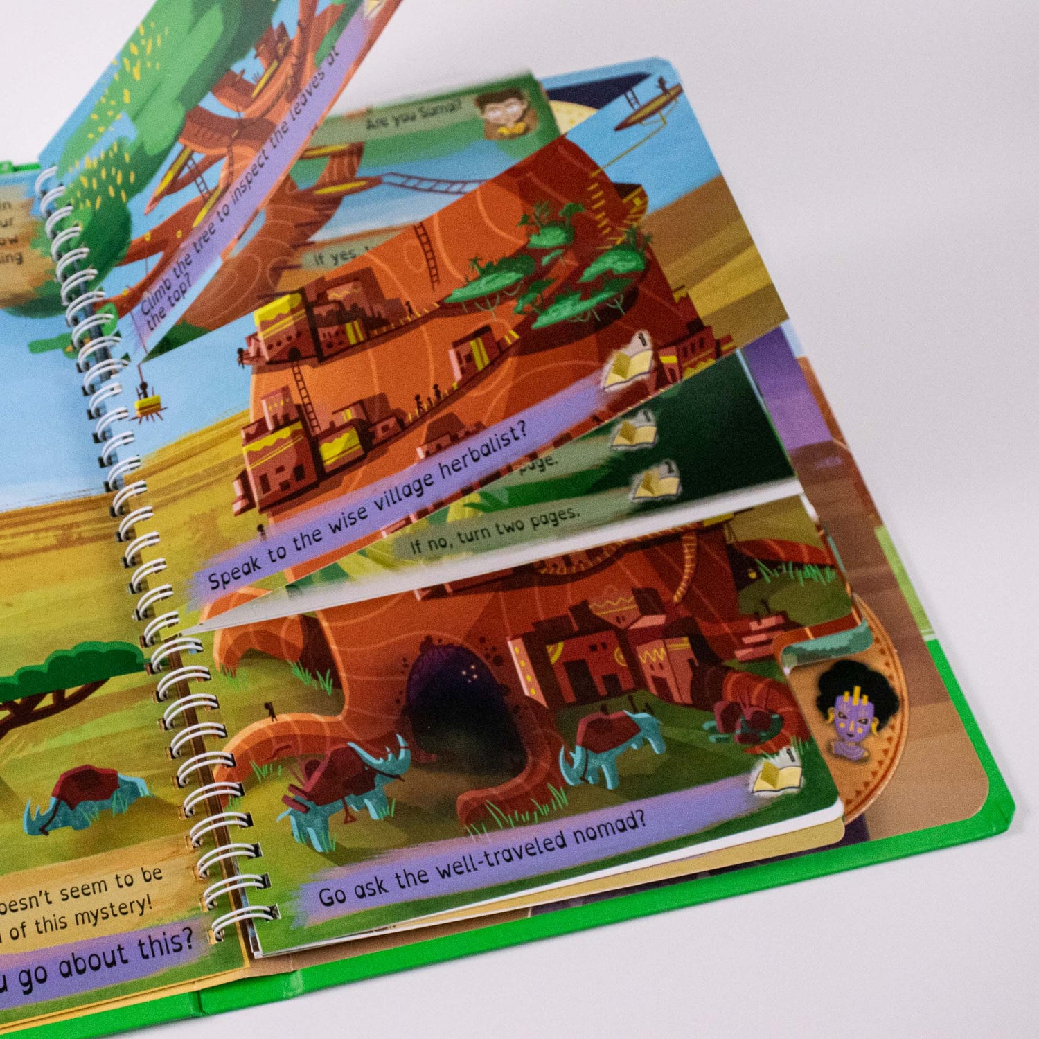 • My child was immediately drawn to the unique character selection and the ability to control the narrative's direction. The book's clever design allows for various paths and endings, encouraging kids to think critically and consider the consequences of their decisions. The tracking wheels to monitor collected items and encountered allies were a hit, adding a sense of progression and accomplishment. The illustrations are absolutely beautiful.