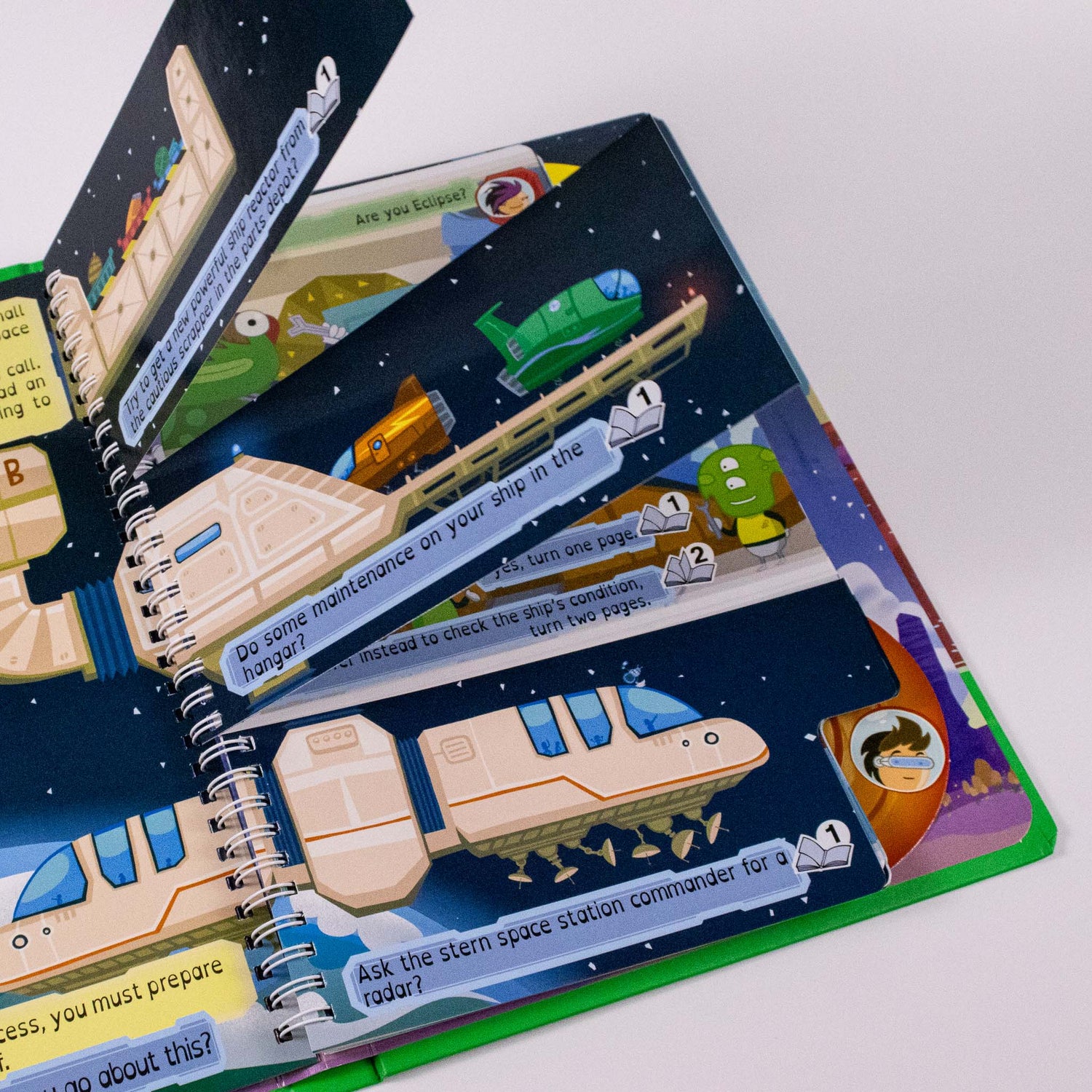 • They draw not only my kids but myself into the book in an interactive decision tree format that changes the story each time as you figure out how to conquer the mission. It’s like multiple books in one. Very cool idea, had never seen anything like it. We got 3!!